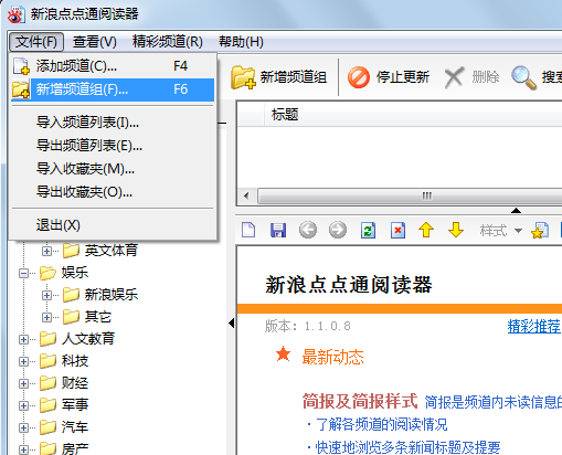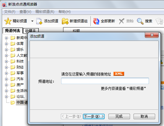 当您使用新浪点点通阅读器订阅新闻时,请在